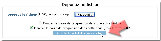 Maintenant que votre fichier est sélectionné, vous pouvez cliquer sur "Accepter le contrat et déposer le fichier".